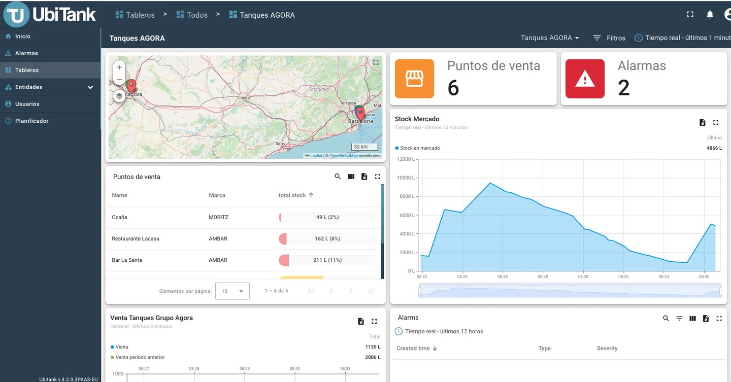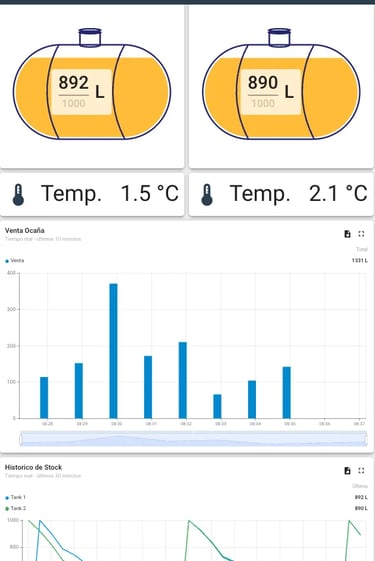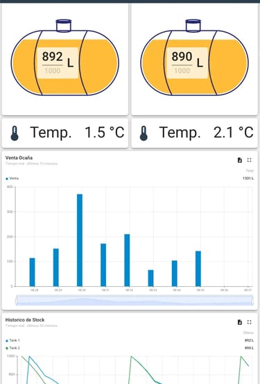 Dispositivos IoT con sensores industriales de alta precisión instalados directamente en sus tanques.